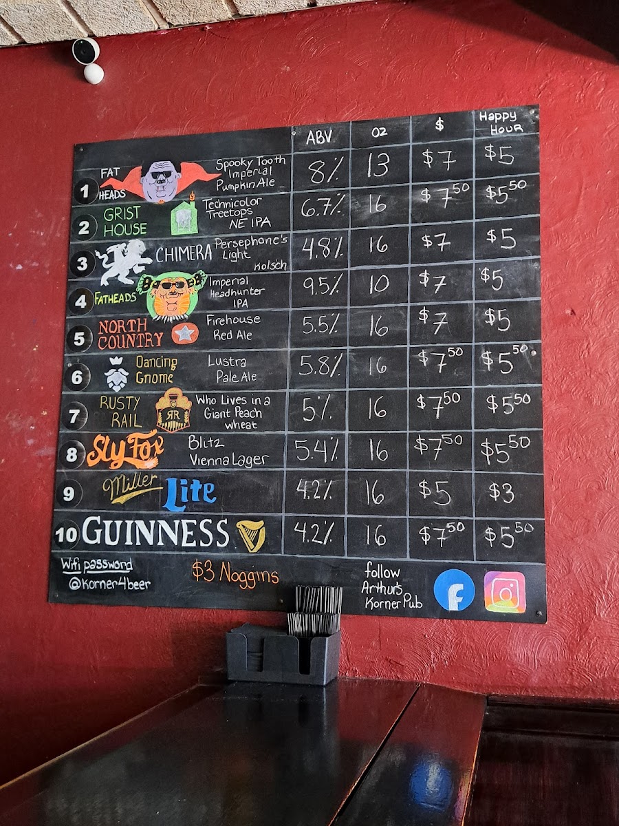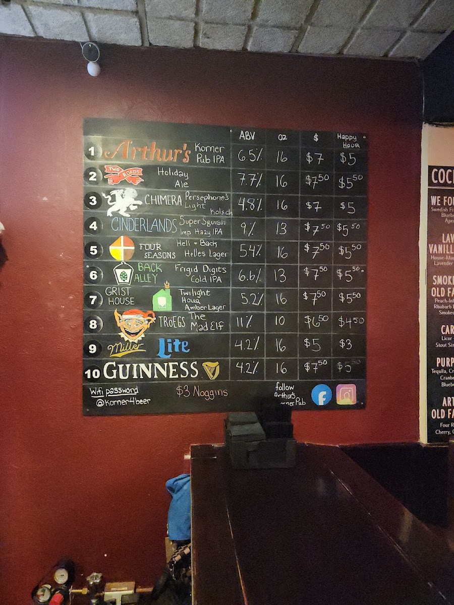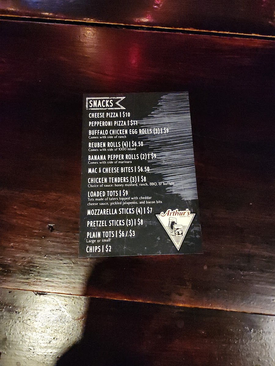 Arthur’s Korner Pub Menu